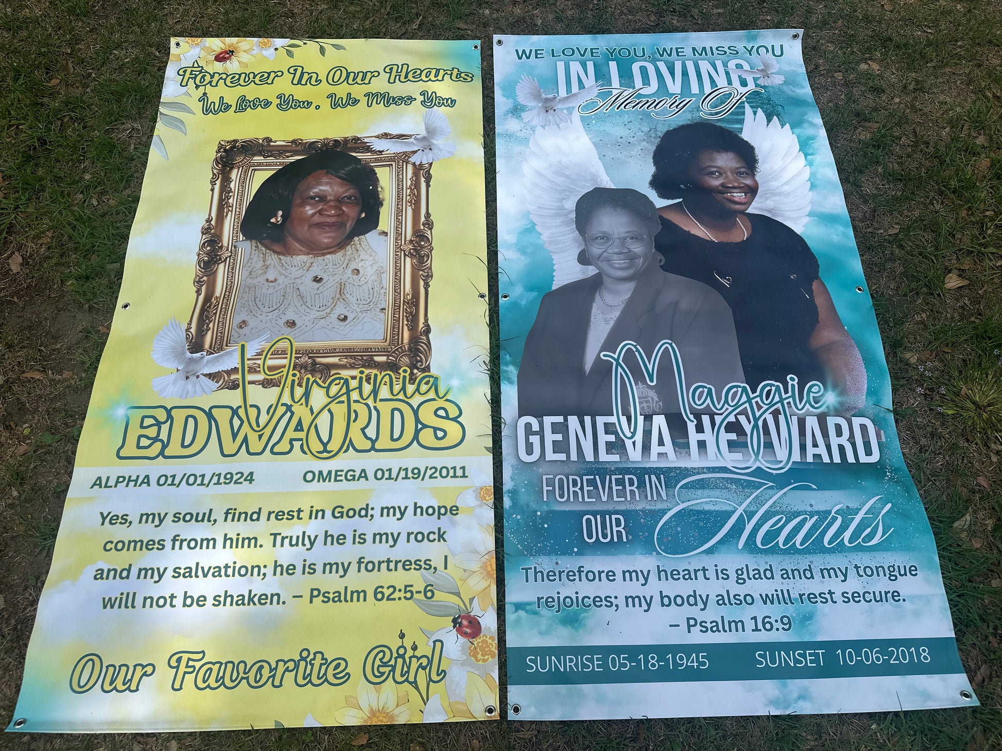 Our custom grave blankets are durable, and weather-resistant banners designed to complement a gravesite. It can be customized with a heartfelt message, name, or decorative design to honor loved ones. Made from high-quality vinyl, this banner is perfect for adding a personal touch to a gravesite during all seasons, offering a lasting tribute that withstands the elements while enhancing the grave’s appearance. Grave blankets can be personalized to reflect the tastes and memories of the deceased, offering a meaningful tribute.